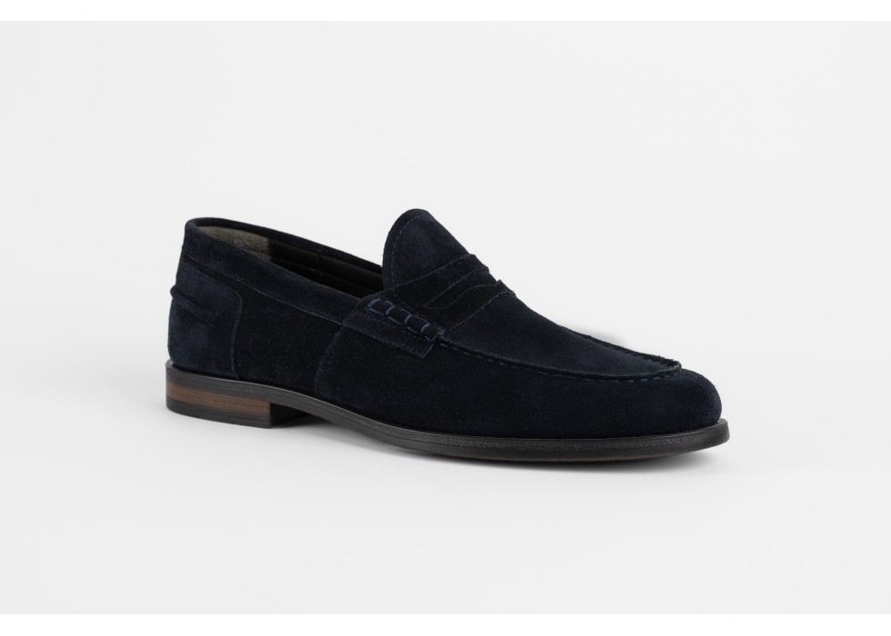 Mocasini din piele întoarsă neagră, cu cusături vizibile și talpă joasă. Acești pantofi slip-on oferă un amestec perfect de eleganță și confort, fiind ideali pentru ocazii formale și casual.