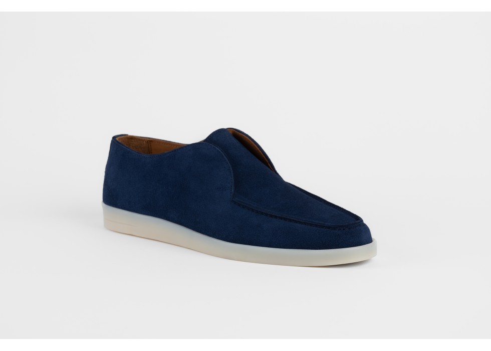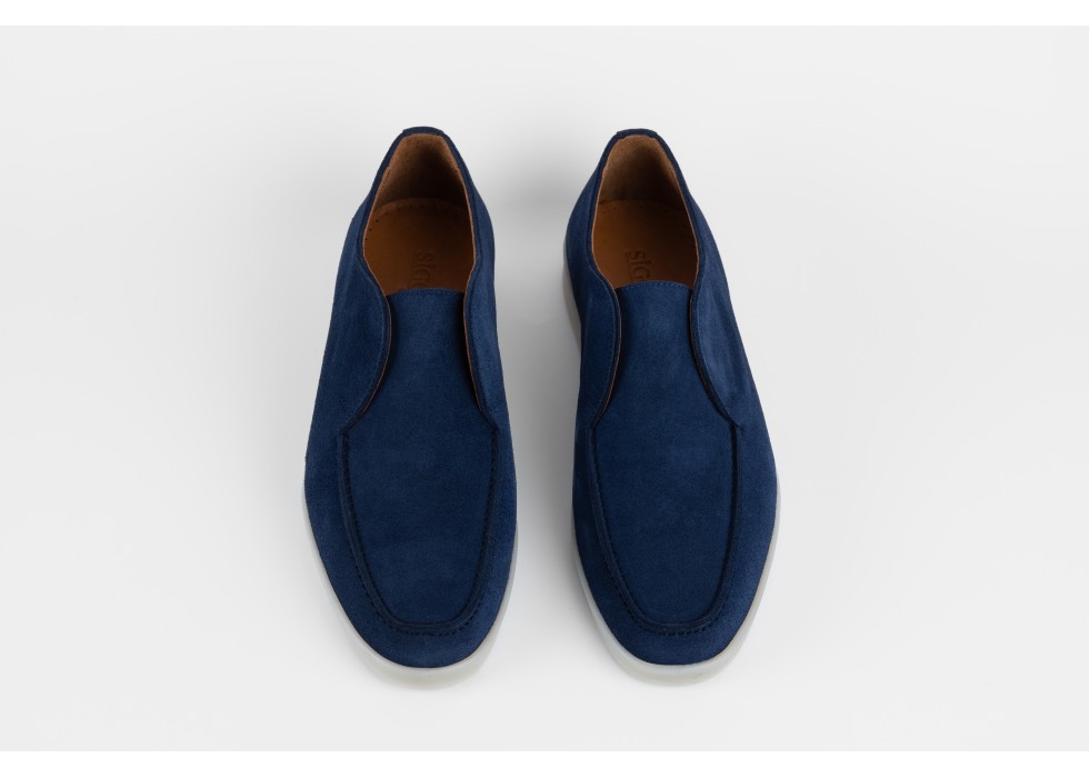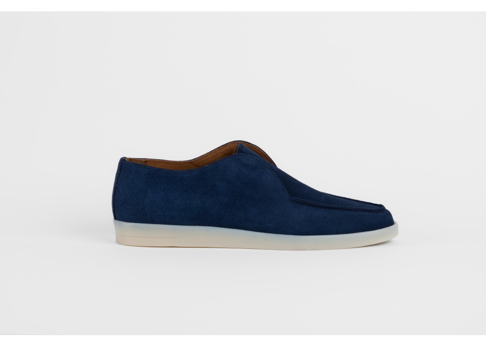 Mocasini ultramarini cu talpă albă, cu un design minimalist și elegant, perfect pentru ocazii formale și casual.