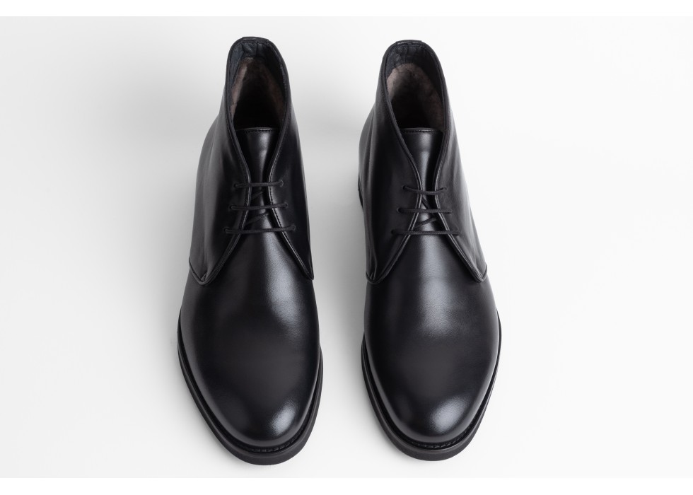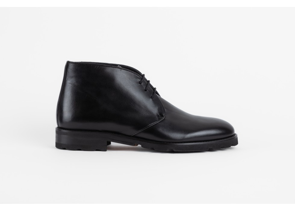 Ghete clasice de culoare neagră din piele, cu toc jos și vârf rotund. Aceste ghete sunt perfecte pentru ocazii formale, oferind un aspect elegant și rafinat.